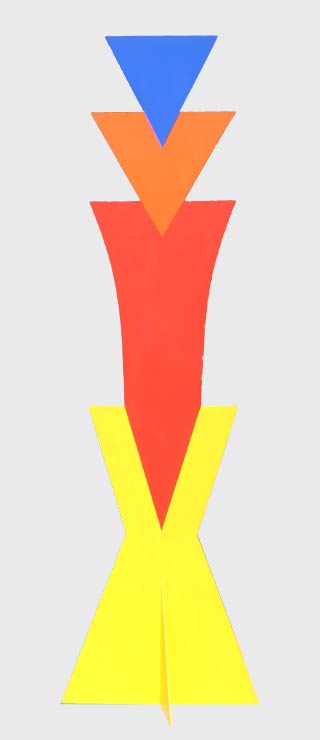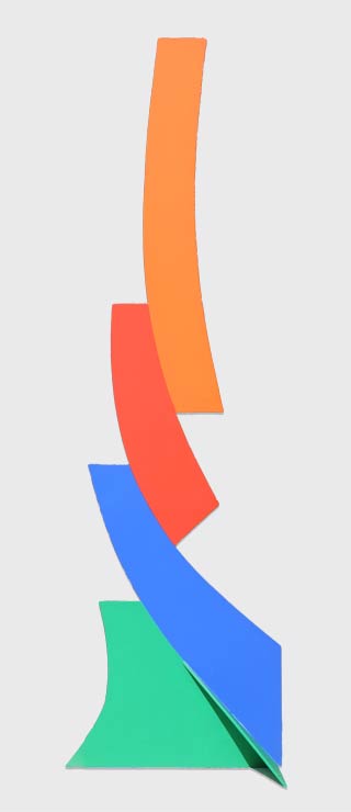 Cada una de las tres esculturas de este grupo tiene una cara con 2 colores complementarios y por la otra cara los mismos colores, aunque en distinta posición.